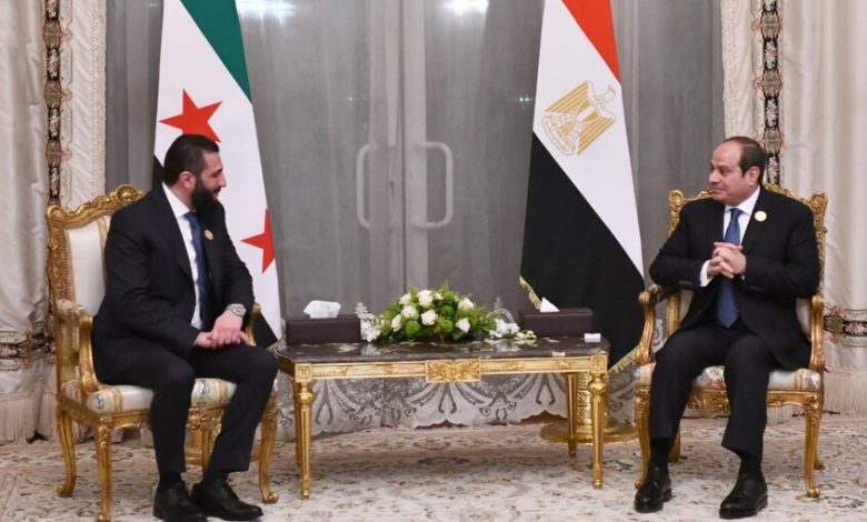 من جهته، دعا الرئيس المصري إلى إطلاق عملية سياسية شاملة تضم كافة مكونات الشعب السوري خلال لقائه الشرع.