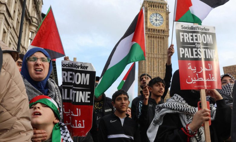 بالأعلام الفلسطينية.. مظاهرات حاشدة في لندن ضد زيارة ترامب