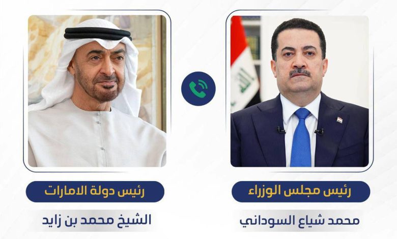 بحث رئيس مجلس الوزراء السيد محمد شياع السوداني، هاتفيا، مع رئيس دولة الإمارات العربية المتحدة الشيخ محمد بن زايد آل نهيان، مستجدات الأوضاع في المنطقة.