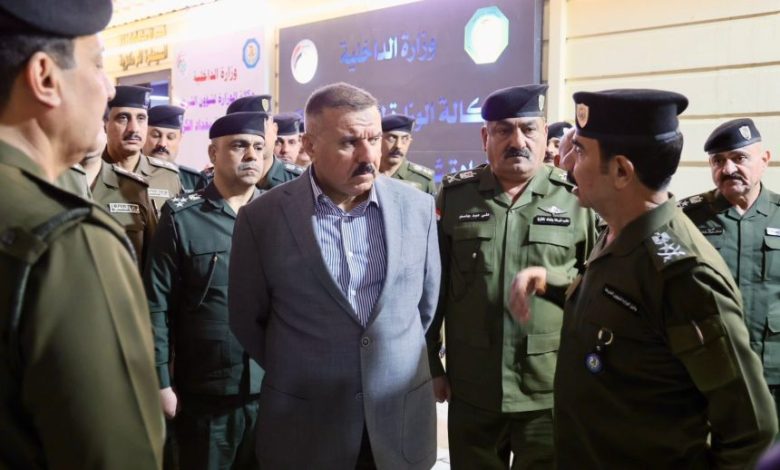 وبين البيان: “الوزير تابع مع قادة شرطة الكرخ ومديري الأقسام الخططَ الموضوعة لتعزيز الاستقرار”.